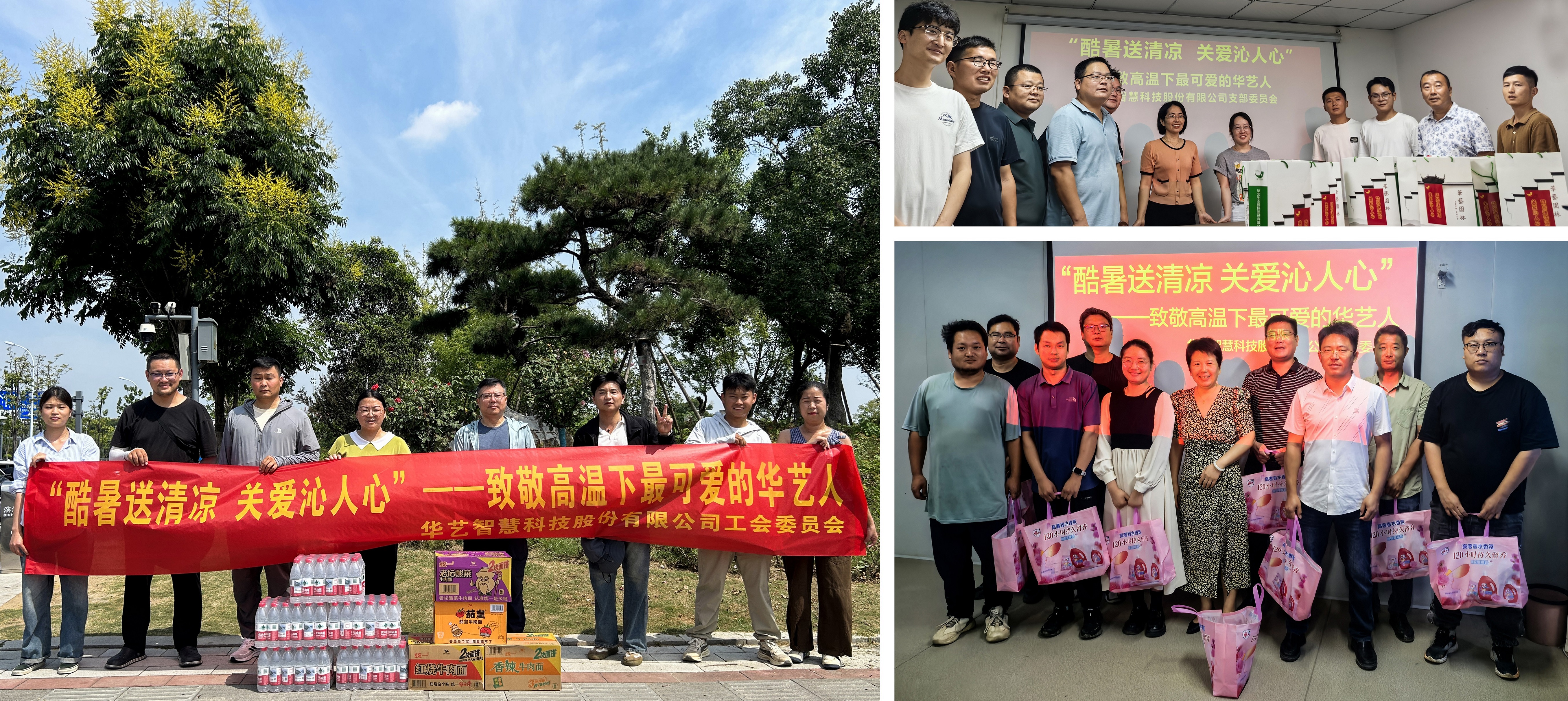 近日,為切實(shí)做好廣大員工的防暑降溫工作,有效維護(hù)員工的勞動(dòng)安全和身心健康,保障各項(xiàng)目進(jìn)度穩(wěn)步推進(jìn),華藝智慧工會(huì)聯(lián)合黨支部奔赴全國各地項(xiàng)目一線,組織開展“送清涼”活動(dòng),向堅(jiān)守崗位的一線員工致以崇高的敬意和誠摯的問候,切實(shí)把組織的關(guān)懷與溫暖傳遞到每一位員工心間。